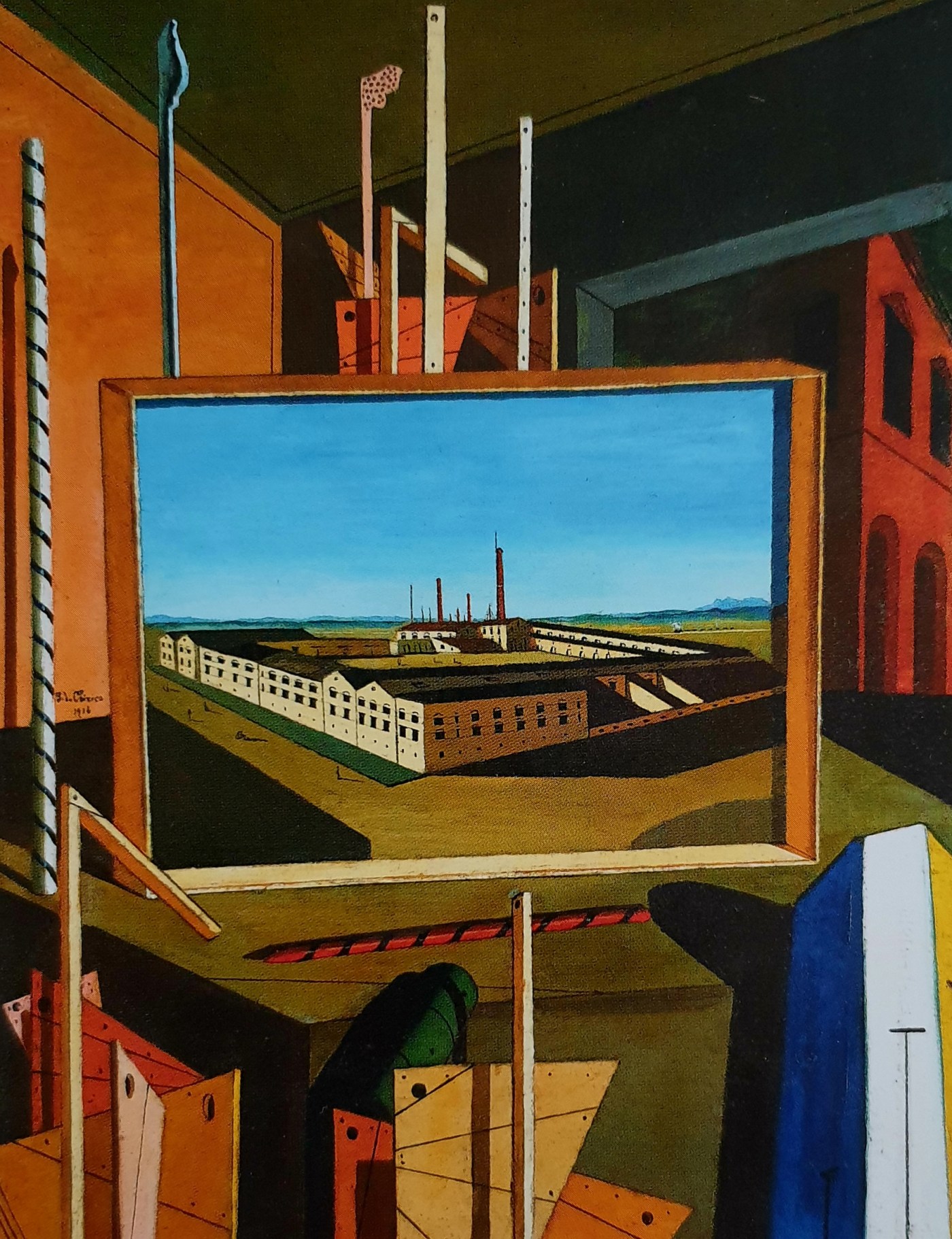 Giorgio de Chirico, Intérieur métaphysique (avec grande usine), 1916