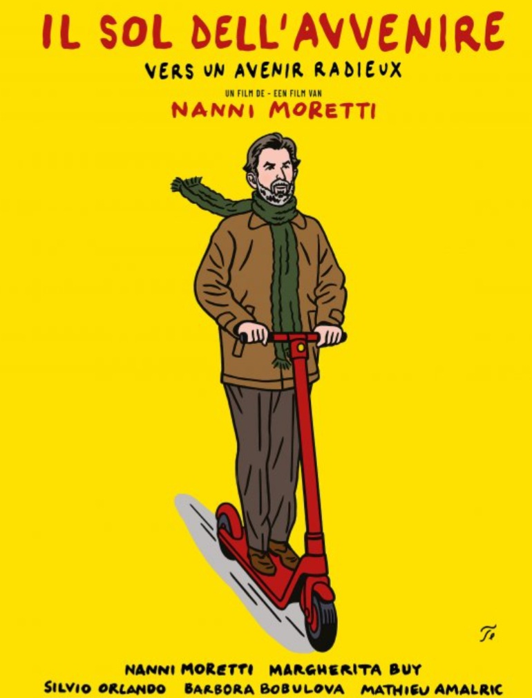 « Vers un avenir radieux ? » La nostalgie est un sentiment ambivalent, qui peut virer à l’enfermement séducteur et complaisant, avec soi. Giovanni – Nanni Moretti en personne – est un cinéaste et un boomer à principes, au point d’être psychorigide avec son entourage familial et professionnel, ses acteurs, son épouse et collaboratrice historique, sa fille… Il connait son cinéma, fellinien notamment, sur le bout des doigts et n’hésite pas à faire la leçon démonstrative à un jeune collègue, du haut de ses quarante années de carrière. Il a d’ailleurs de bonnes raisons lorsqu’il démontre éloquemment, face à une scène d’exécution esthétiquement standardisée tournée par ce collègue, que la violence est montrable au cinéma si le spectateur est amené à en ressentir le caractère insupportable et saura donc s’en détourner. Mais son comportement de donneur de leçons insupporte et sombre dans la stérilité, tant il rejette hors de sa vue la vie qui ne colle pas à ses conceptions. C’est un boomer impénitent.