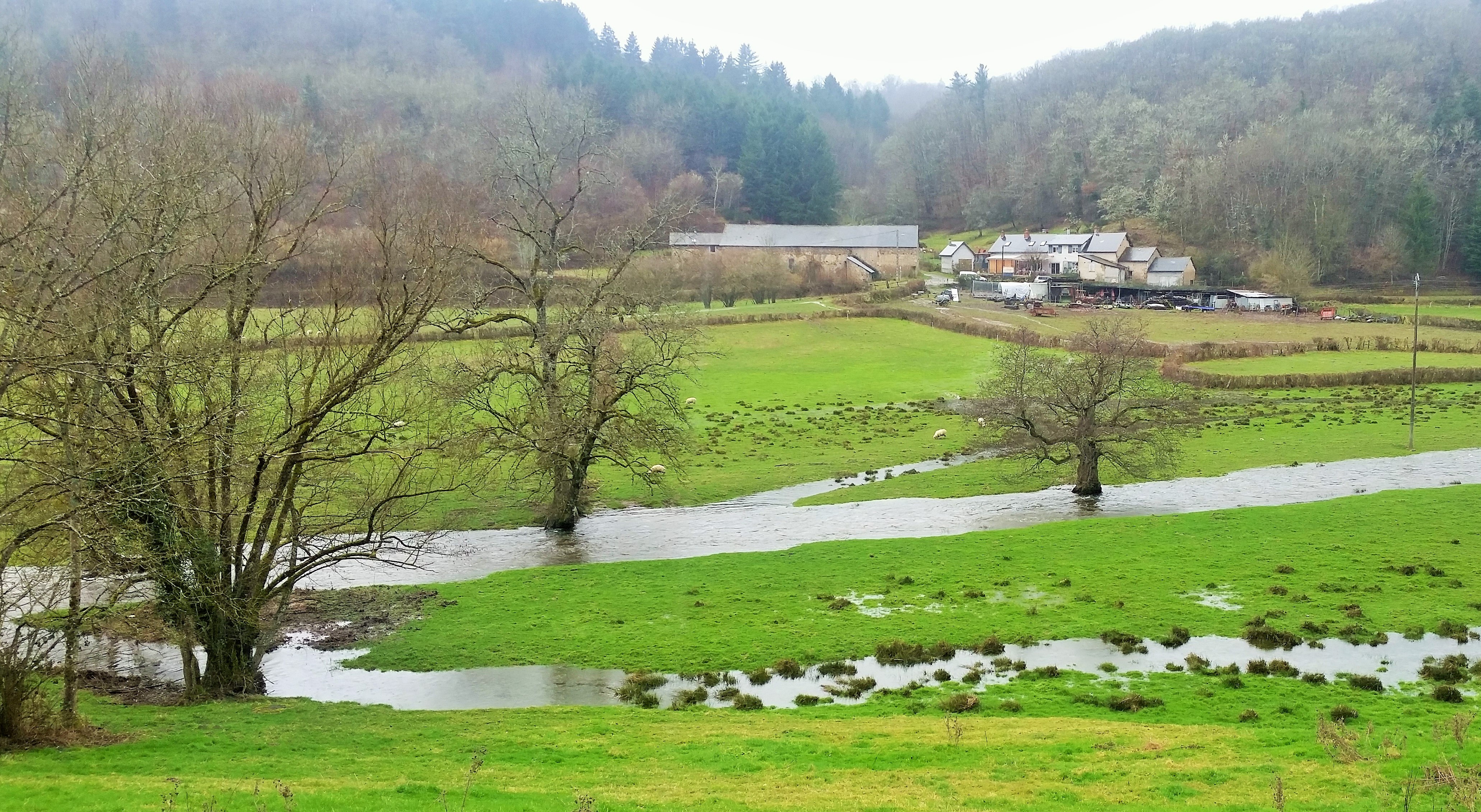 Au creux de son vallon, la rivière vive du Ternin prend ses aises et s’épand dans les prairies que le gel n’a pas jaunies. Elle va gonfler l’Arroux qui, nourri par le château d’eau morvandiau, déroule ses sinuosités vers le sud-ouest pour venir en renfort de la Loire, bridée par les barrages du Forez.
