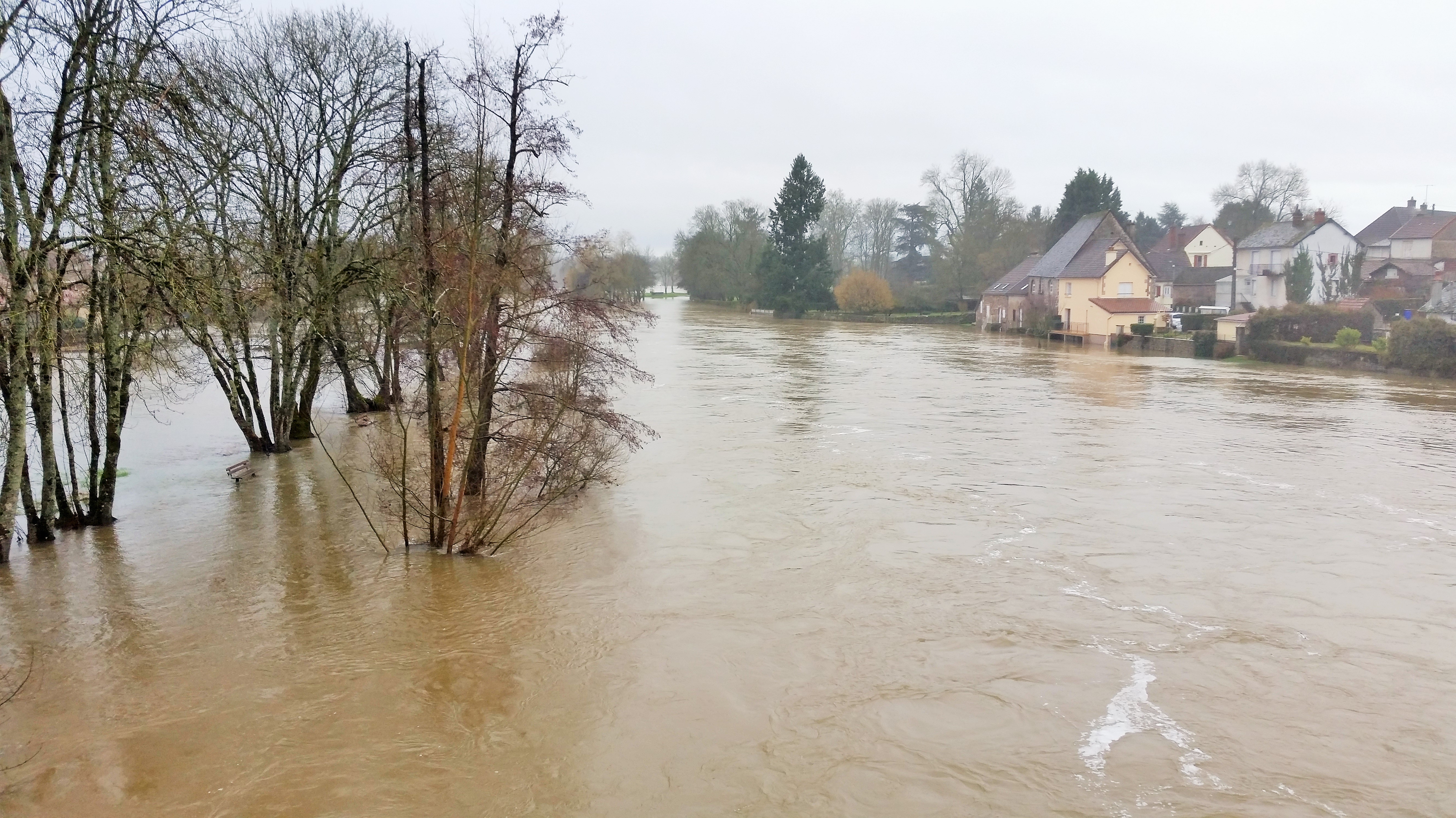 Tout empli de cet hiver noyé, l’Arroux traverse, menaçant et alourdi, le village, bien nommé ce jour-là, d’Etang-sur-Arroux. Du Morvan, je vais caboter dans les petits pays assoupis du centre doucement vallonné de la France, entre Charolais, Brionnais et Nivernais.
