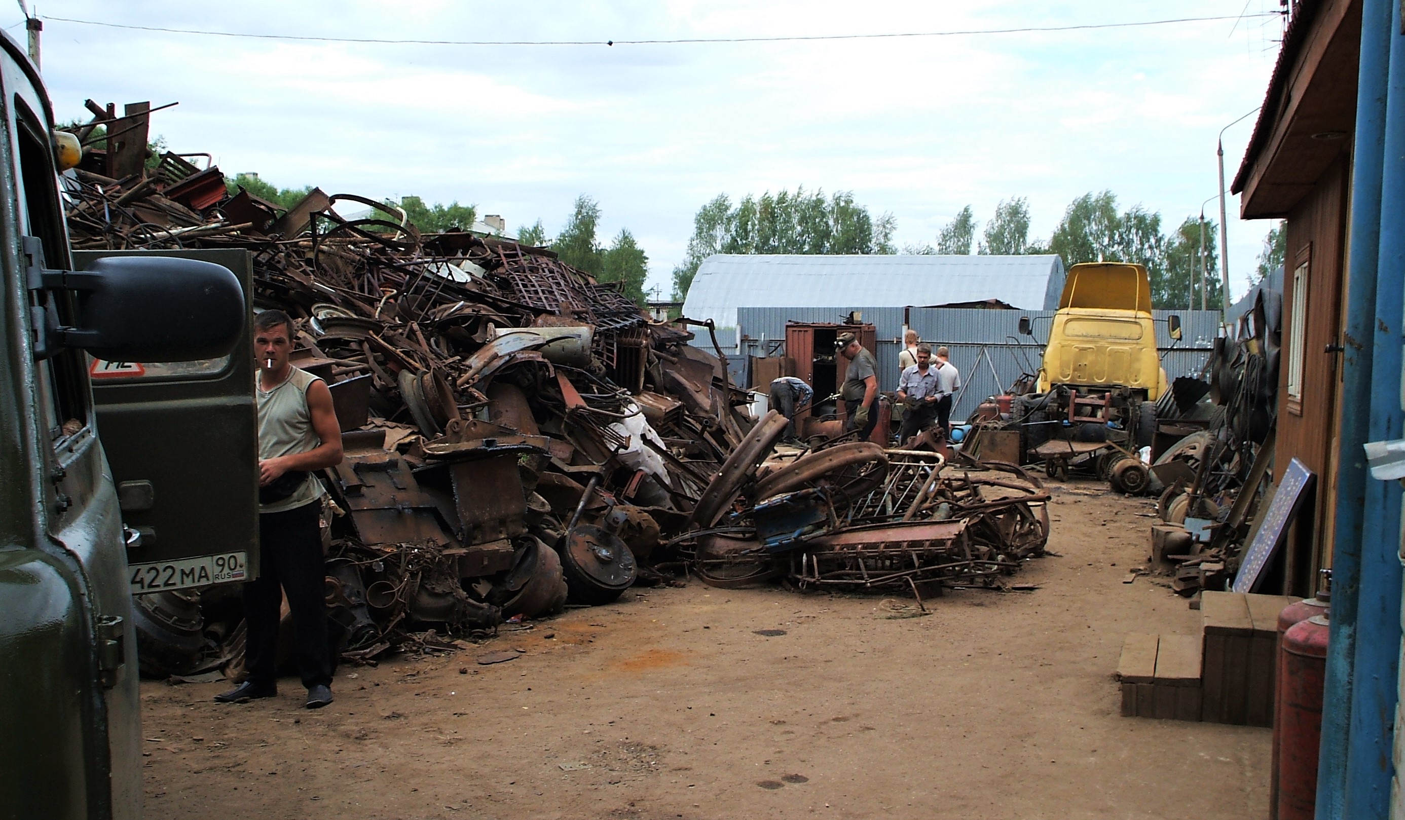 Pas ou plus de bateliers sur le chemin de halage qui emmène jusqu’à Staritsa le long de la Volga. Le chemin épouse les lents méandres du fleuve, jusqu’à ce que l’immaculé monastère qui signale la proximité de la ville se découvre sous le soleil qui enlumine l’autre rive du fleuve : un paysage russe, comme celui que découvre, de plus haut, un expérimentateur téméraire de ballon à air chaud dans le prologue du film de Tarkovski, Andréï Roublev (1969), qui retrace les pérégrinations et le destin de ce moine, peintre d’icônes, qui vécut à la jointure des XIVe et XVe siècles. Roublev parcourt avec ses compagnons la campagne russe et nourrit son inspiration de ses rencontres, souvent déconcertantes, avec un peuple autant païen et profane que porté au mysticisme. Quand nous traversâmes Staritsa, le monastère était en restauration. Et la ville elle-même gardait encore son empreinte soviétique, apparemment guère pressée de s’en débarrasser. Chez le ferrailleur du coin, JeanF trouva quelques vestiges de la guerre, dépareillés mais précieux témoins.